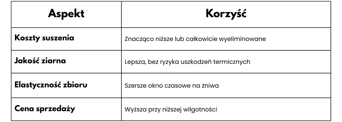 Często chwalony jest również sam efekt Dry-Down. Gospodarstwa, które mają doświadczenie z tą odmianą, potwierdzają osiąganie realnych oszczędności finansowych i czasowych na suszeniu. Niektórzy rolnicy zgłaszają, że udało im się całkowicie zrezygnować z suszenia, zbierając ziarno o wilgotności 14-16%, co w przypadku wielu innych odmian byłoby wynikiem nie do osiągnięcia.