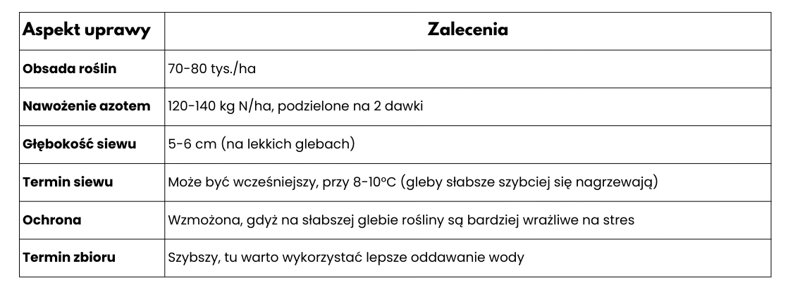 Na słabych glebach zaleca się, by iść w nieco niższe obsady niż na dobrych stanowiskach. Daje to roślinom nie tylko więcej przestrzeni na rozwój korzeni, ale też lepszy dostęp do wody.