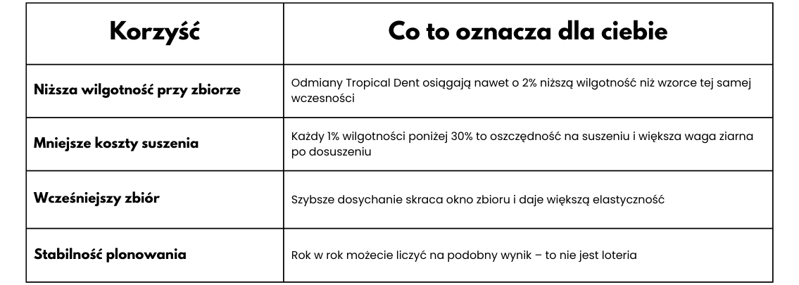 Genetyka Tropical Dent® = szybkie dosychanie = niższe koszty suszenia