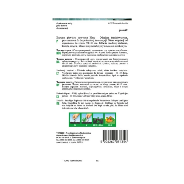 - Okres wegetacji, od wysadzenia do zbioru 90-110 dni.