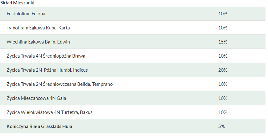 "Mieszanka na pastwiska doskonałej wartości pokarmowej wzbogaconą udziałem koniczyny białej w połączeniu z dobrą zimotrwałością stawia tę mieszankę na wysokim pewnym miejscu wśród mieszanek pastwiskowych"