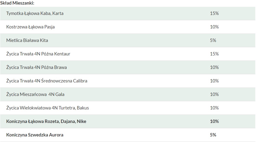 Skład Procentowy Mieszanka Traw KŁ-5:
