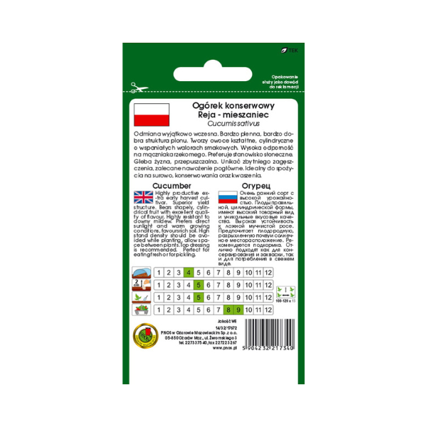 - Termin wysiewu: 2 dekada IV (rozsada)