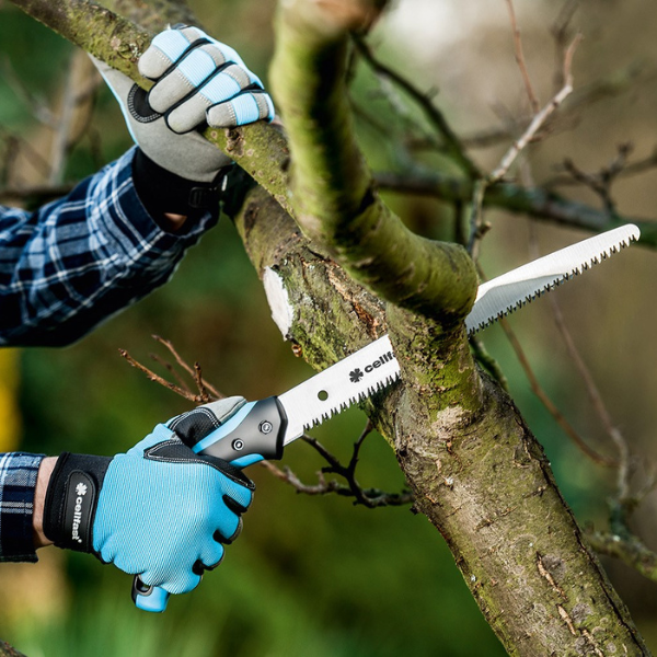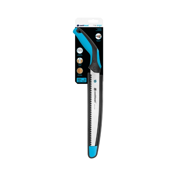 - ergonomiczna piła jednoręczna z ostrzem wykonanym z wysokiej jakości stali, przeznaczona do cięcia świeżych, suchych gałęzi i pędów