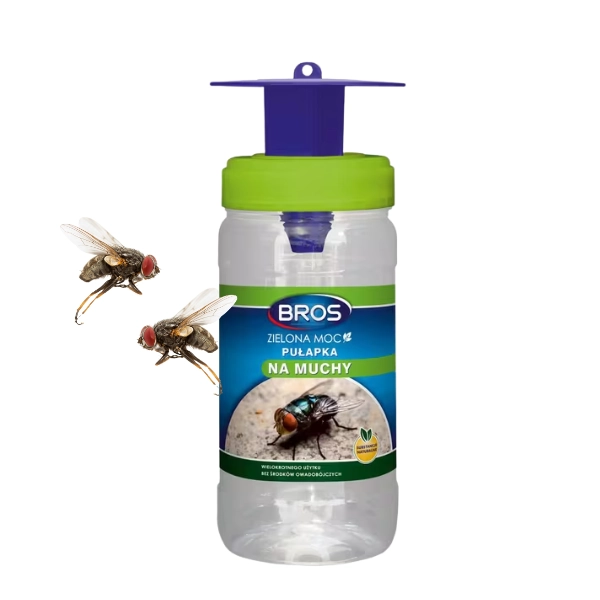 Pułapka na muchy Zielona Moc Bros to innowacyjne urządzenie zaprojektowane z myślą o skutecznym wyłapywaniu much na tarasach, balkonach, w altanach oraz innych miejscach przebywania ludzi na świeżym powietrzu. Produkt wykorzystuje specjalnie opracowany, atrakcyjny środek nęcący, który skutecznie wabi muchy z dużej odległości. Specjalna konstrukcja pułapki sprawia, że owady łatwo wlatują do środka, ale nie mogą się wydostać na zewnątrz. Dzięki temu jedna pułapka jest w stanie wyłapać tysiące much, znacząco ograniczając ich populację w okolicy i zapewniając komfort podczas spędzania czasu na zewnątrz. Pułapka stanowi ekologiczną alternatywę dla środków chemicznych – działa mechanicznie, bez użycia insektycydów, co czyni ją bezpieczną dla ludzi, zwierząt domowych i środowiska.
