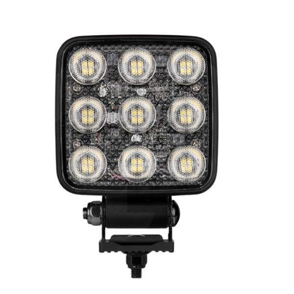 Kwadratowa aluminiowa obudowa w kolorze czarnym gwarantuje doskonałą odporność mechaniczną i efektywne odprowadzanie ciepła od 36 diod LED. Stopień ochrony IP67/IP69K oznacza całkowitą pyłoszczelność, ochronę przed zanurzeniem w wodzie oraz odporność na mycie wysokociśnieniowe parą w wysokiej temperaturze. Reflektor pozostaje w pełni funkcjonalny w ekstremalnych warunkach od -40°C do +50°C.