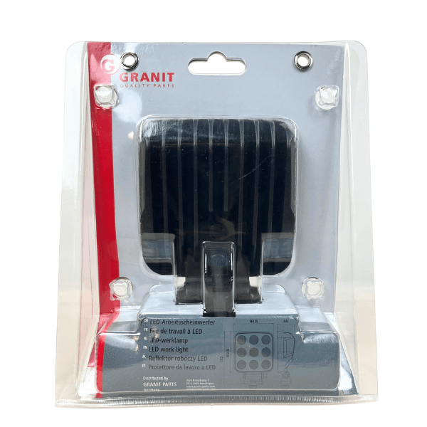 Reflektor roboczy LED GRANIT to wydajne oświetlenie dalekosiężne zaprojektowane do profesjonalnych zastosowań w maszynach rolniczych i pojazdach roboczych. Moc 54W z aż 36 diodami OSRAM zapewnia skuteczność świetlną 4500 lumenów, oferując intensywne światło o dużym zasięgu. Uniwersalne zasilanie 12/24V z zakresem napięcia 10-30V gwarantuje stabilną pracę w różnych konfiguracjach elektrycznych maszyn.