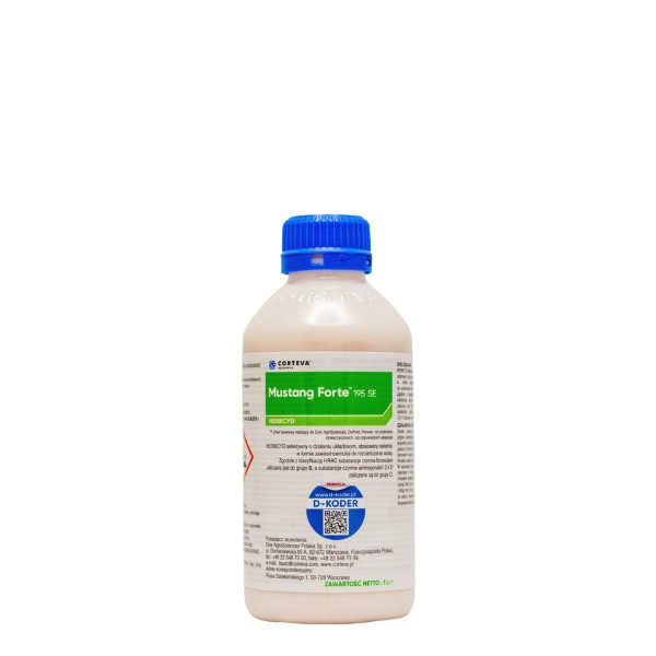 MUSTANG FORTE 195 SE - jest środkiem chwastobójczym w formie emulsjo - zawiesiny do rozcieńczania wodą, przeznaczonym do wiosennego zwalczania rocznych i wieloletnich chwastów dwuliściennych w pszenicy ozimej, życie, pszenżycie ozimym, jęczmieniu jarym, pszenicy jarej, owsie i mieszance jęczmienia jarego z owsem.