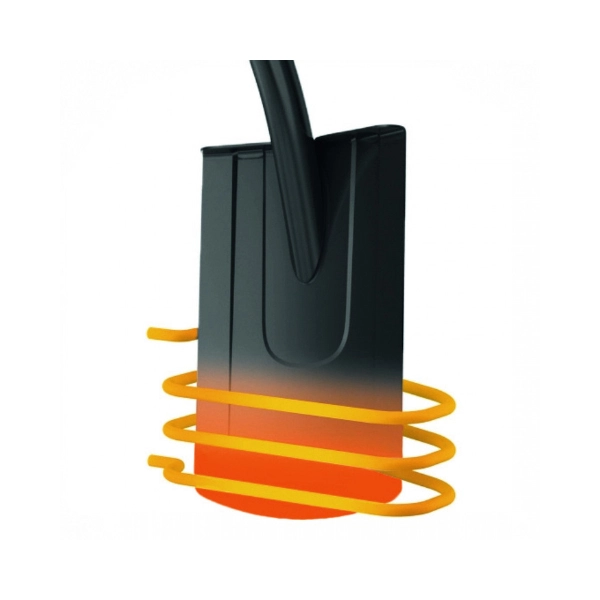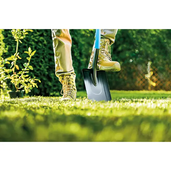 Pracę w twardej glebie ułatwia przede wszystkim ostrzona krawędź dolna głowicy szpadla, która zespolona jest z jego trzonkiem za pomocą długiego i solidnego spawu. Znaczący wpływ w tej kwestii ma także trwała, metalowa podstawka na stopę, zapewniająca podparcie przy wbijaniu głowicy w ziemię. Taka budowa nie tylko zwiększa komfort pracy, ale również zabezpiecza produkt przed uszkodzeniem.